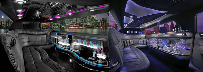Amenities: TV/VCR, CD player, privacy window divider, custom lighting, moon-roof, and intercom. Also available, a complimentary wet "well" bar