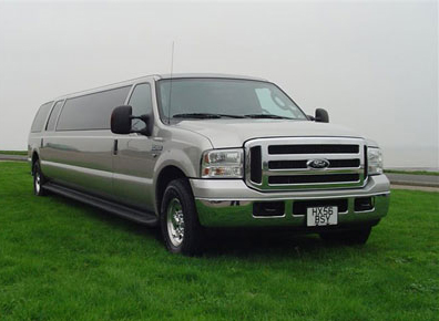 Ford Excursion Stretch Limousines... are one of our most unique limousines, and with enough room for up to 15 of your closest friends, the Excursion limousine is definitely a one of kind, popular for weddings, this limousine features CD player, DVD player, VCR, flat screen TV'S, ice chests, champagne wells, champagne glasses, full fibber optics in mirror in ceiling and in bar area and some room in the rear for storage. Water, ice or a assortment of soft drinks are included at no extra charge. Excursion Limousine Service London.