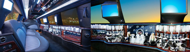 Amenities: DVD Player, CD player, privacy window divider, custom lighting, moon-roof, and intercom. Also available, a complimentary wet "well" bar